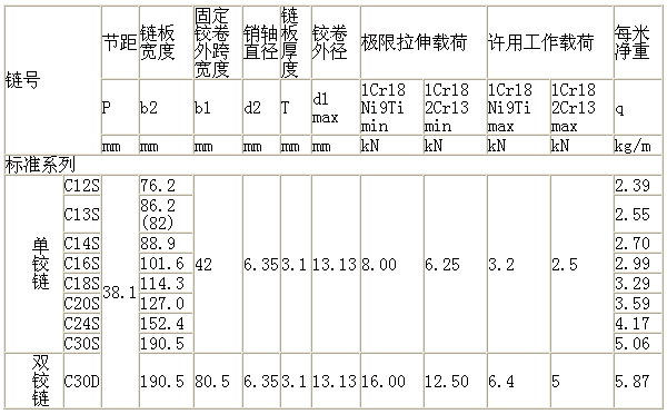 不锈钢链板标准系列